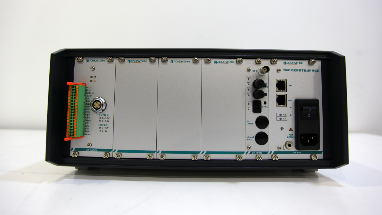 12kV一二次融合柱上開關數字化組件(ADMU),可完成對來自模擬量輸出的互感器多路電流和電壓以及開關量信息的數據處理(包括采樣、模數轉換、比例縮放、輸出格式化報文等)。介于其承載著配電二次設備前端數據采集、轉換的重要功能,故對ADMU的功能及性能的有效測試,成為了配網數字化測試工作的一個重要環(huán)節(jié)。PDU100配網數字化組件測試儀是一款為ADMU專項測試而開發(fā)的測試工具,實現配網自動化中廣泛應用的一二次融合柱上開關數字化組件的快速自動化檢測。