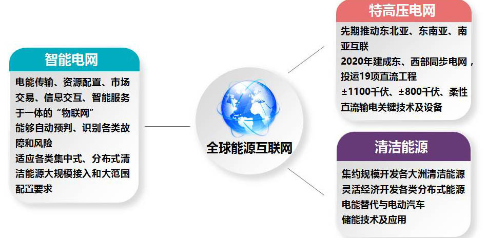 書中指出:全球能源互聯(lián)網(wǎng)是以特高壓電網(wǎng)為骨干網(wǎng)架、全球互聯(lián)的堅強智能電網(wǎng),是清潔能源在全球范圍大規(guī)模開發(fā)、配置、利用的基礎(chǔ)平臺,實質(zhì)就是“智能電網(wǎng)+特高壓電網(wǎng)+清潔能源”,推動能源、信息、交通三網(wǎng)融合發(fā)展。