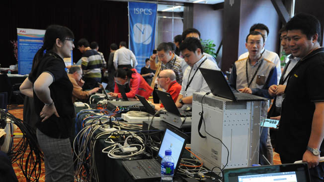 會議包含互插拔(兼容性)測試、技術(shù)交流日和學(xué)術(shù)研討會三個部分?;ゲ灏螠y試環(huán)節(jié),所有參與者都能夠與全球涉及IEEE1588時鐘同步技術(shù)廠商的設(shè)備或組件進(jìn)行互插拔測試,測試項目覆蓋電力、通信等領(lǐng)域的應(yīng)用模式和標(biāo)準(zhǔn),驗證產(chǎn)品在精確時鐘同步技術(shù)協(xié)議一致性、行業(yè)標(biāo)準(zhǔn)符合度、與主流廠商設(shè)備兼容性等方面的性能,分享技術(shù)經(jīng)驗。