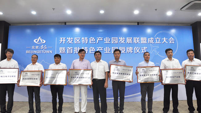 2015年7月16日,北京經(jīng)濟(jì)技術(shù)開(kāi)發(fā)區(qū)特色產(chǎn)業(yè)園發(fā)展聯(lián)盟成立大會(huì)暨首批特色產(chǎn)業(yè)園授牌儀式在開(kāi)發(fā)區(qū)博大大廈舉行,開(kāi)發(fā)區(qū)管委會(huì)主任梁勝、副主任繩立成、高言杰、大興區(qū)黨組成員謝冠超等領(lǐng)導(dǎo)及開(kāi)發(fā)區(qū)工委辦、宣傳部、發(fā)改局、大興經(jīng)信委、15家特色產(chǎn)業(yè)園主要負(fù)責(zé)人參加了本次會(huì)議。作為“北京市經(jīng)濟(jì)技術(shù)開(kāi)發(fā)區(qū)特色產(chǎn)業(yè)園發(fā)展聯(lián)盟”成員單位之一,“博電能源互聯(lián)網(wǎng)創(chuàng)新園”(PONOVO Energy Internet Innovation Park)等15個(gè)園區(qū)首批獲得授牌。北京博電董事長(zhǎng)陳衛(wèi)出席會(huì)議并接受開(kāi)發(fā)區(qū)授牌。