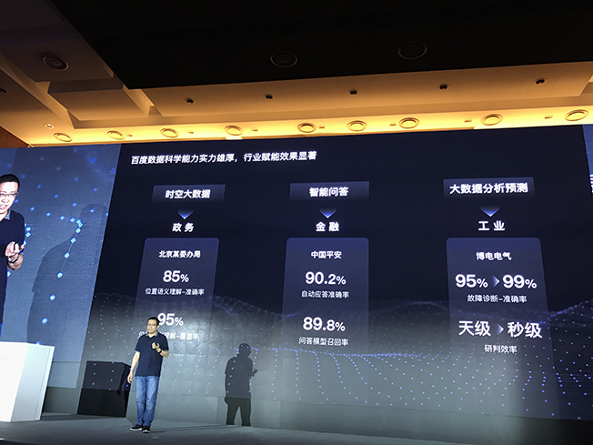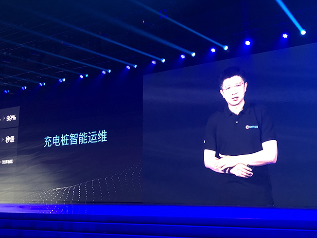 ▲百度高級副總裁王海峰分享與博電電氣合作開發(fā)的電動汽車智能運維平臺