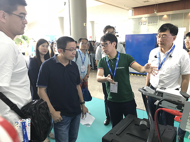 ▲專業(yè)人士現(xiàn)場了解博電便攜式充電樁測試儀