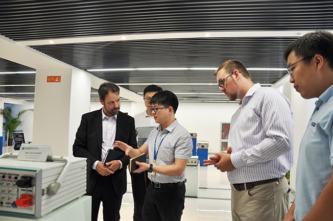 最后,周博士陪同NI代表來到展廳參觀相關(guān)產(chǎn)品實物及現(xiàn)場演示。