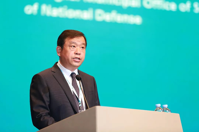 ▲大會(huì)開幕上,上海市國防科技工業(yè)辦公室副主任婁志強(qiáng)代表主辦方致開幕辭