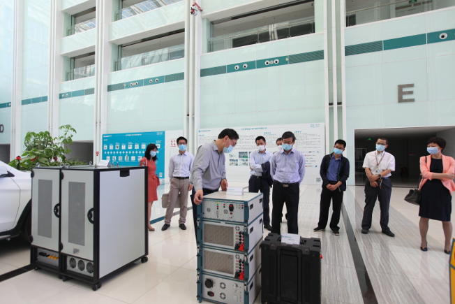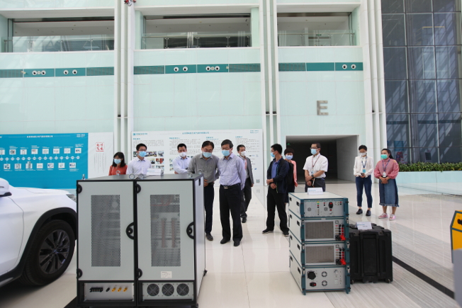 ▲聯(lián)研院領導參觀博電EVD200直流充電設施現(xiàn)場檢測裝置