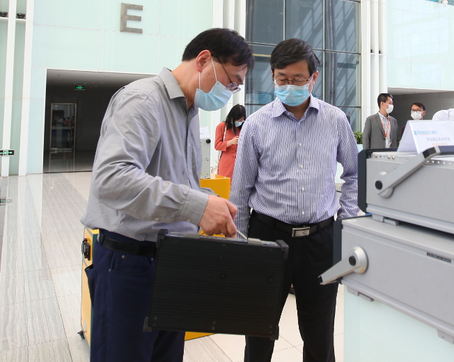 ▲陳總向滕樂天董事長介紹小巧輕便的L336系列多功能現(xiàn)場測試數(shù)據(jù)終端