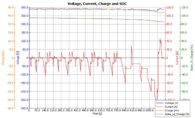 如何根據(jù)真實(shí)的應(yīng)用工況來測試也是目前超級電容測試的難點(diǎn),現(xiàn)在通常采用的恒流充放電測試方法都屬于靜態(tài)測試,超級電容在各個(gè)應(yīng)用場景中往往面對的都是瞬間的大電流的脈沖充電或者放電,在汽車啟動(dòng)、剎車、上坡、下坡、加速等操作下這些電流波形都非常復(fù)雜,不可能恒流。目前其他的測試產(chǎn)品都沒有仿真工況測試的能力,但是博電的SCT系列超級電容器測試平臺通過NI Veristand模型接口可以聯(lián)合AVL Cruise模型進(jìn)行聯(lián)合仿真,并通過博電的高性能,高速功放進(jìn)行輸出,可以輕松的模擬NEDC/ WLTC/CLTC等工況對超級電容器進(jìn)行充電和放電的測試,這更能測試出真實(shí)的可用容量。