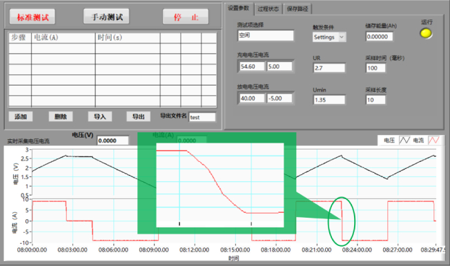 在做循環(huán)壽命測試時(shí),添加完成所有狀態(tài)序列,只需輸入循環(huán)次數(shù)即可,一鍵自動(dòng)測試,極大的節(jié)省了人工成本,提高了測試效率。