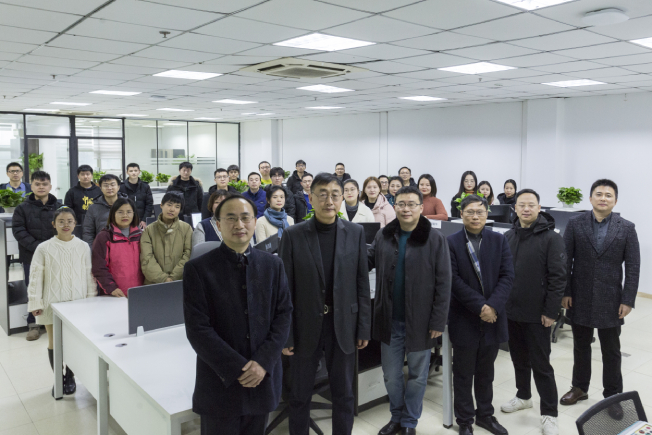 全體領(lǐng)導(dǎo)和員工在新辦公區(qū)合影留念