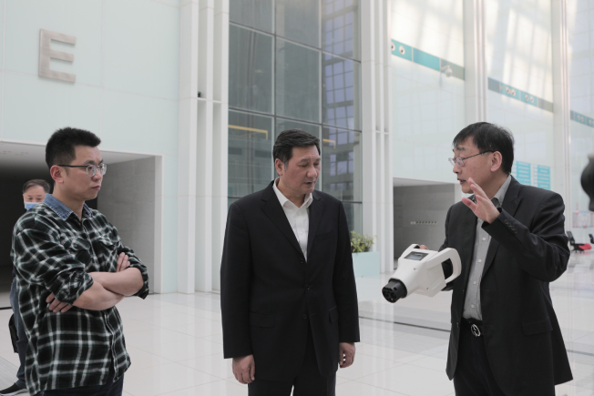 ▲劉書記一行仔細了解手持式電動汽車檢測儀