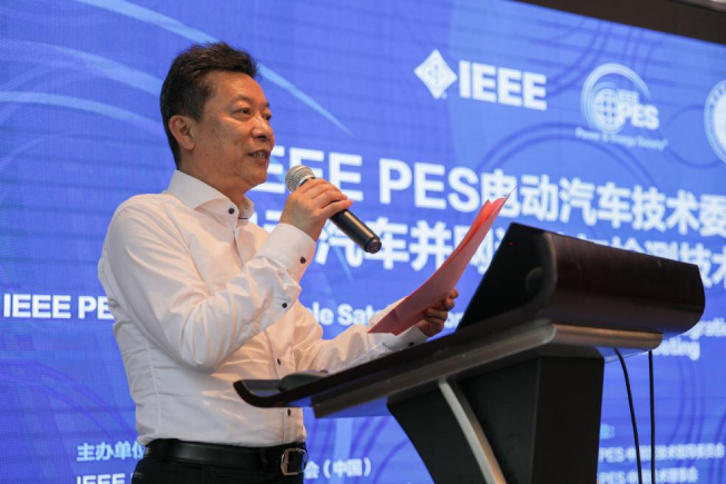 ▲國網(wǎng)電動汽車公司副總經(jīng)理、IEEE PES電動汽車技術(shù)委員會(中國)秘書長王文先生致辭