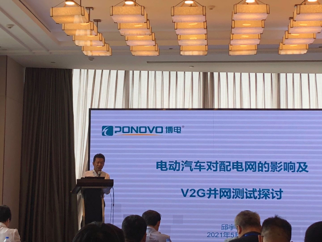 ▲博電科技首席科學(xué)家邱宇峰作“電動汽車對配電網(wǎng)的影響及V2G并網(wǎng)測試”主題講座