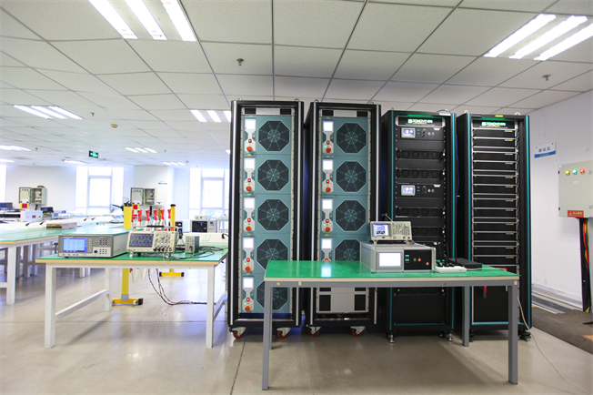 走進博電科技博普檢測中心大功率實驗室,技術(shù)人員正在進行測試和數(shù)據(jù)分析,第一款仿真檢測產(chǎn)品隨之揭開神秘面紗?!皠e小瞧這幾臺黑色外觀的屏柜,它們就是博電科技自主研發(fā)的‘120KW高性能SiC仿真放大器’,也是目前業(yè)內(nèi)功率等級最高、性能最佳的開關(guān)型四象限放大器,單柜市場價格都在百萬以上?!标愋l(wèi)說。該設(shè)備組成的功率在環(huán)仿真測試系統(tǒng),是提高復(fù)雜電氣系統(tǒng)性能、質(zhì)量的關(guān)鍵驗證設(shè)備,應(yīng)用領(lǐng)域非常廣,如:“源、網(wǎng)、荷、儲”新型電力系統(tǒng)、航空電氣、電動汽車、機器人、復(fù)雜工業(yè)控制系統(tǒng)等等。這類設(shè)備技術(shù)難度非常高,只有歐美一兩家企業(yè)能夠生產(chǎn),我們的設(shè)備不僅填補國內(nèi)空白,實現(xiàn)關(guān)鍵技術(shù)和設(shè)備的自主可控,而且已經(jīng)實現(xiàn)出口。