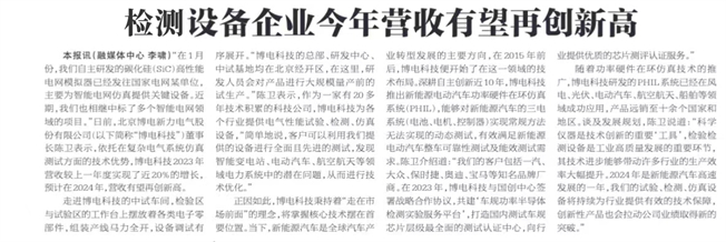 3月1日,《亦城時(shí)報(bào)》頭版以《檢測設(shè)備企業(yè)今年?duì)I收有望再創(chuàng)新高》為題,對博電科技進(jìn)行了深入報(bào)道。